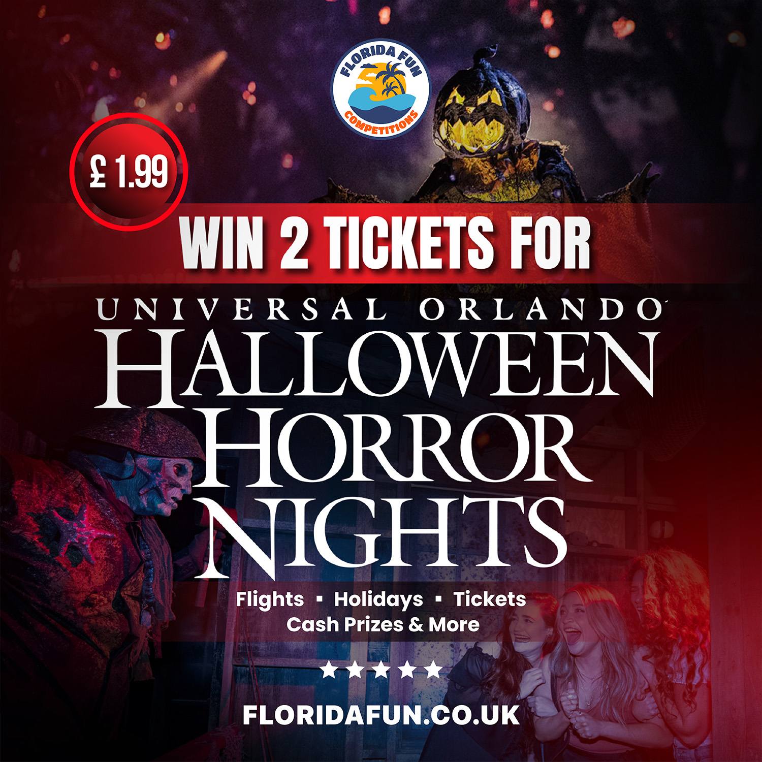 Get ready for a spine-chilling experience like no other with two tickets to the infamous Halloween Horror Nights at Universal Studios Orlando Resort! This is your chance to immerse yourself in the ultimate Halloween event, filled with terrifying haunted houses, sinister scare zones, and unforgettable frights. Enter now for just £1.99!