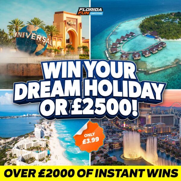 Holiday of Your Choice or £2500 Tax-Free Cash + Instant Wins